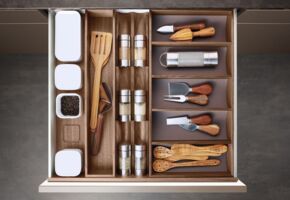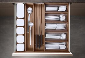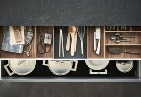 Bei einer Poggenpohl Küche wird das Layout jedes Schrank- und Schubkasteninneren sorgfältig gestaltet, damit es ganz Ihren Bedürfnissen entspricht und eine optimale Raumnutzung möglich wird. Durch ein breites Spektrum an Zubehörteilen können die Designer die ideale Lösung für Ihre individuelle Küche entwickeln – mit der Sorgfalt im Detail, für die Poggenpohl bekannt ist. Alle Zubehörteile und Beschläge werden nach den höchsten Standards entworfen und gefertigt.